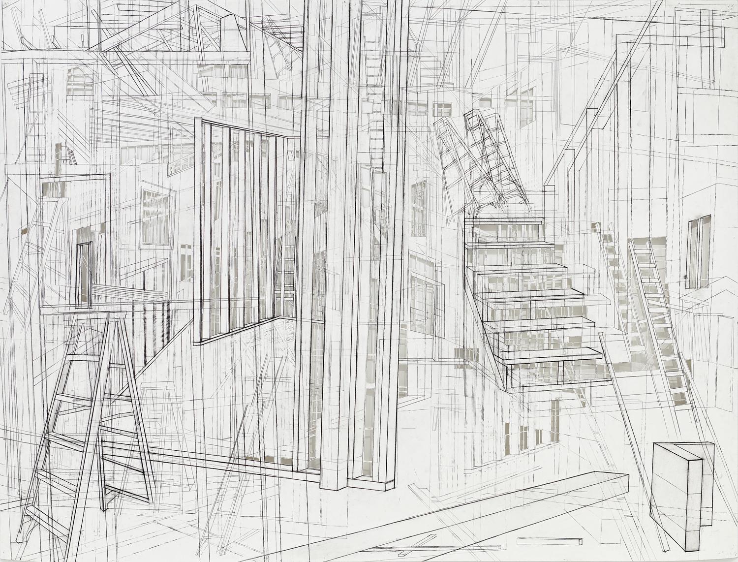 graphite and charcoal on paper with cutouts