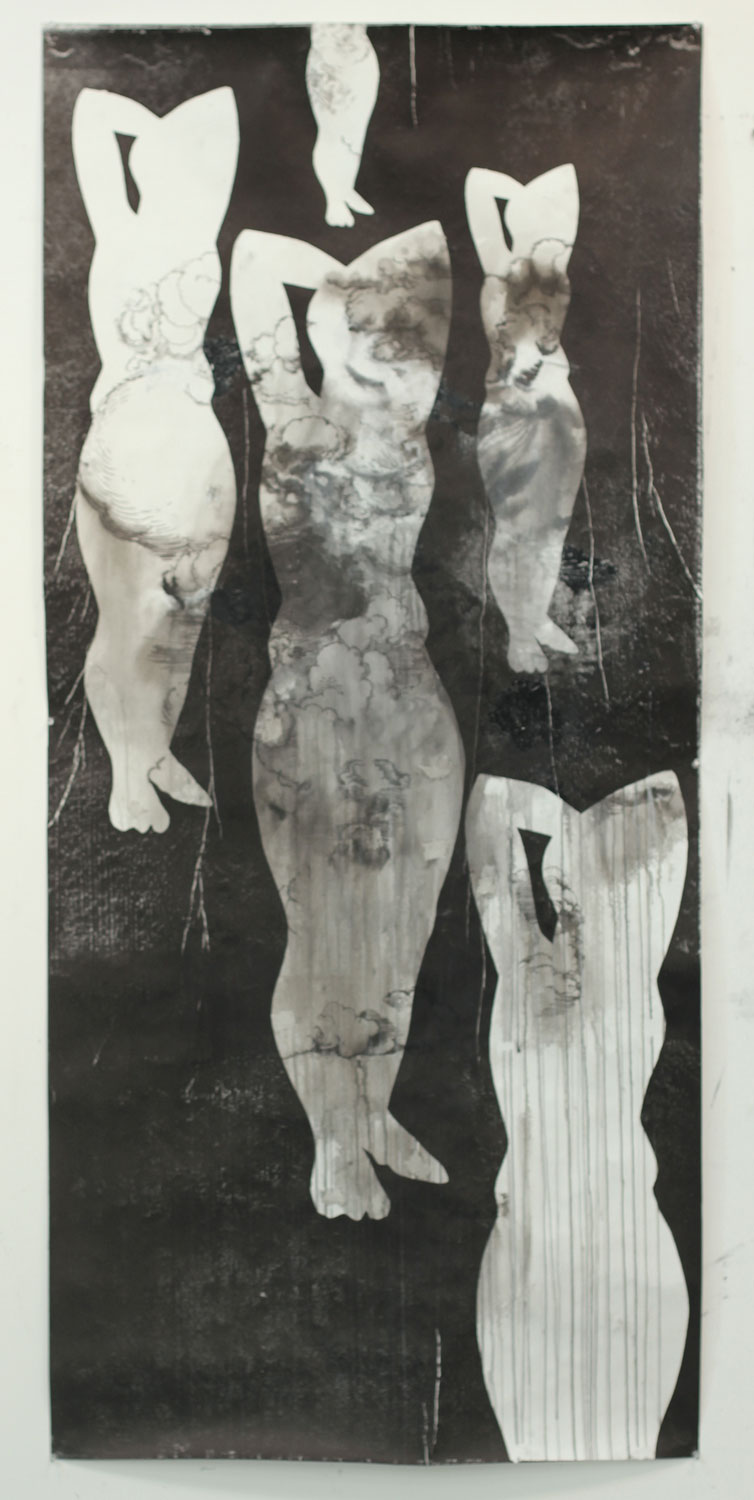 ink, charcoal, gesso and Xerox transfer on paper